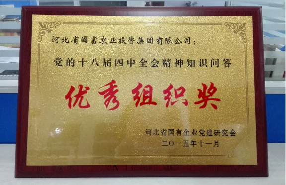 國富投資集團黨委積極響應(yīng)省國資委號召,認真組織全集團黨員參加中國共產(chǎn)黨十八屆四中全會精神知識答題活動。我集團榮獲省國資委黨建研究會頒發(fā)的“優(yōu)秀組織獎”榮譽稱號。其中,章靜同志獲一等獎,王欣同志獲優(yōu)秀獎。