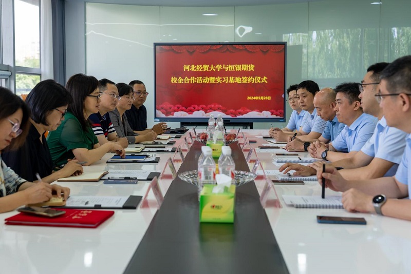 2024年5月28日下午,國富投資集團(tuán)所屬恒銀期貨有限公司(以下簡稱:“恒銀期貨”)與河北經(jīng)貿(mào)大學(xué)在恒銀期貨總部成功舉行校企合作活動(dòng)暨實(shí)習(xí)基地簽約儀式。此次活動(dòng)標(biāo)志著雙方在教育與實(shí)踐相結(jié)合、人才培養(yǎng)與市場需求對接、深化課題研究、將“鄭商所杯”比賽納入省級學(xué)科競賽方面邁出了堅(jiān)實(shí)的一步。
