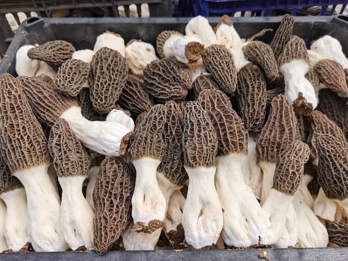 該基地占地25畝,初建有大棚27座。自去年11月播種以來(lái),羊肚菌長(zhǎng)勢(shì)良好,4月份已陸續(xù)開(kāi)始出菇,種植戶們沉浸在羊肚菌收獲的喜悅之中,大棚內(nèi)一朵朵羊肚菌破土而出,乳白色的菌柄撐起蜂窩狀的菌蓋,煞是喜人。大家滿懷喜悅的采摘羊肚菌,去根、烘烤、挑選、打包,做著銷售前的準(zhǔn)備,一片繁忙歡快的景象。